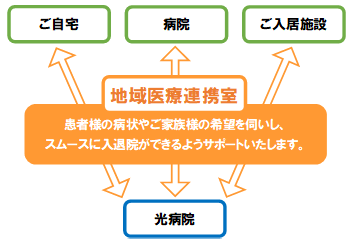 転院や入院(レスパイト入院含む)に関するご相談は地域医療連携室担当へご連絡下さい。